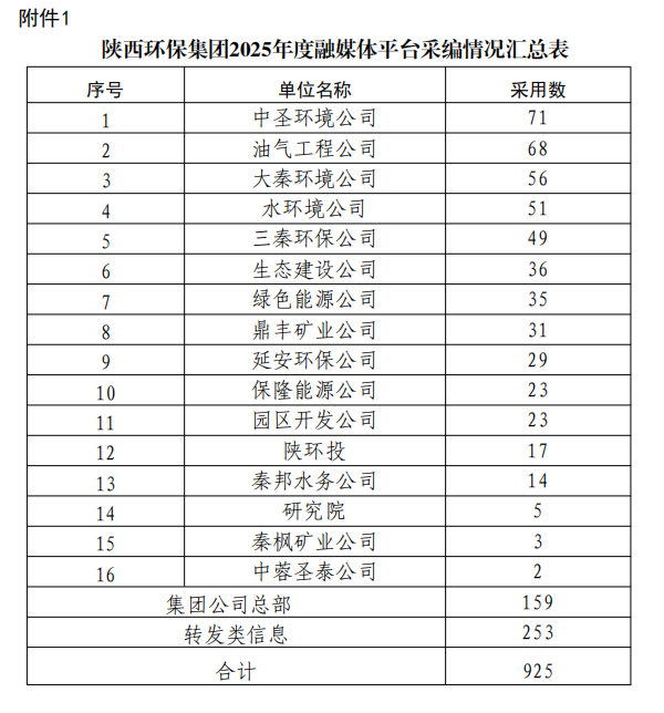 为加强集团公司门户网站、微信公众号、新浪微博、视频号等融媒体平台的稿件采编工作,鼓励广大通讯员围绕企业中心工作撰写出高质量的稿件,发挥优秀稿件的示范作用,为集团高质量发展鼓与呼,按照集团公司《关于建立政务信息采用情况通报和优秀稿件评选制度的通知》文件要求,现将2025年度集团公司融媒体平台稿件采用及2025年四季度优秀稿件评选情况通报如下。