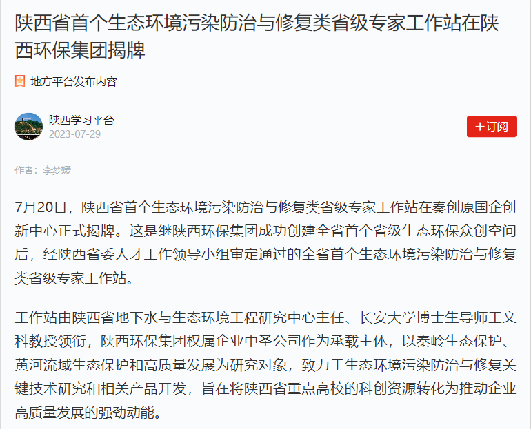 7月29日,学习强国平台以《陕西省首个生态环境污染防治与修复类省级专家工作站在6686体育官网集团揭牌》为题,对6686体育官网集团成功创建省级专家工作站等工作开展情况进行了报道,现刊载如下,以飨读者。